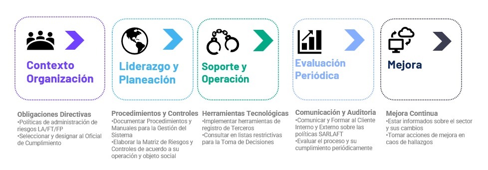 Los elementos clave para la organizaciones están enmarcados en la ISO 37301:2021, a continuación LexNova SAS presenta su propuesta de flujo de proceso para las empresas obligadas a implementar el SARLAFT.